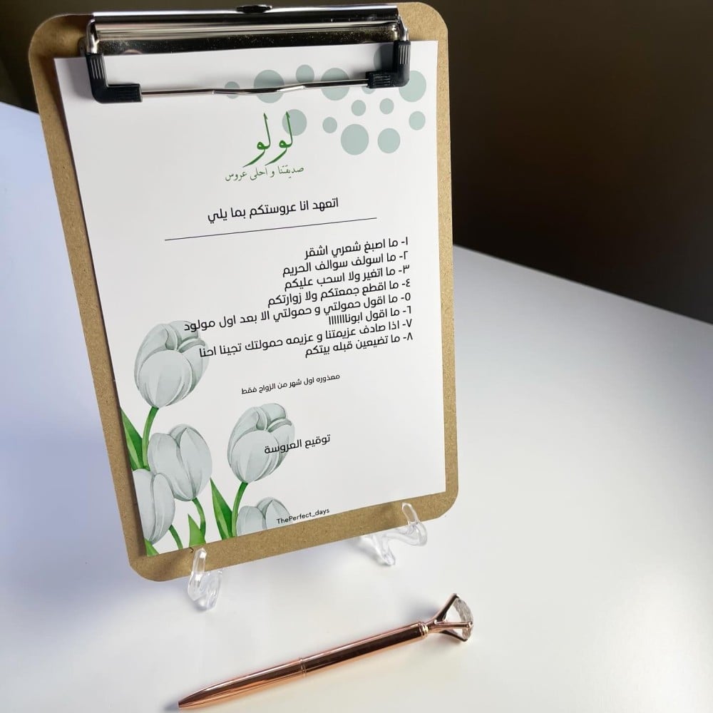 يرجى ارفاق اسم العروسه و العباره المفضلة بالملاحظاتبامكانكم التواصل عبر الواتس اب لارسال ثيم الحفله الخاص